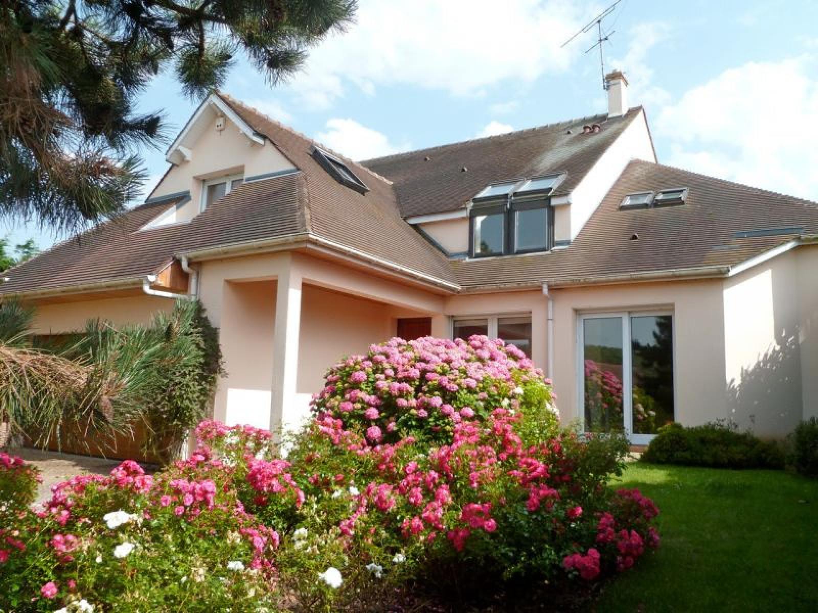 Prête à vivre, rare, ensoleillée et calme cette VILLA vous attend Elle comprend: une entrée cathédrale ouvrant sur le salon (parquet et cheminée avec insert), une grande family room avec cuisine à l'américaine, une chambre ou bureau. De larges baies ouvrent sur une grande terrasse avec jacuzzi orientée sud est. A l'étage, 4 chambres 3 salles de bains dont une suite parentale (chambre, salle de bains, un grand dressing) Nombreux rangements. Le garage pour 2 voitures est accessible directement de la maison (ouverture automatique) Volets et portail automatiques, arrosage commandé, éclairage du jardin, alarme, visiophone, reconnaissance digitale. Les chambres de l'étage sont toutes climatisées. Le jardin entièrement clos, paysager est sans vis-à-vis. Grande cave Harnois. Pour plus d'informations, n'hésitez pas à contacter C. Herman au 0664901557. Honoraires d'agence inclus de 2,5%.